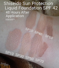 Shiseido Sun Protection/UV Protective Liquid Foundation SPF 42, PA+++ Swatches of Shades